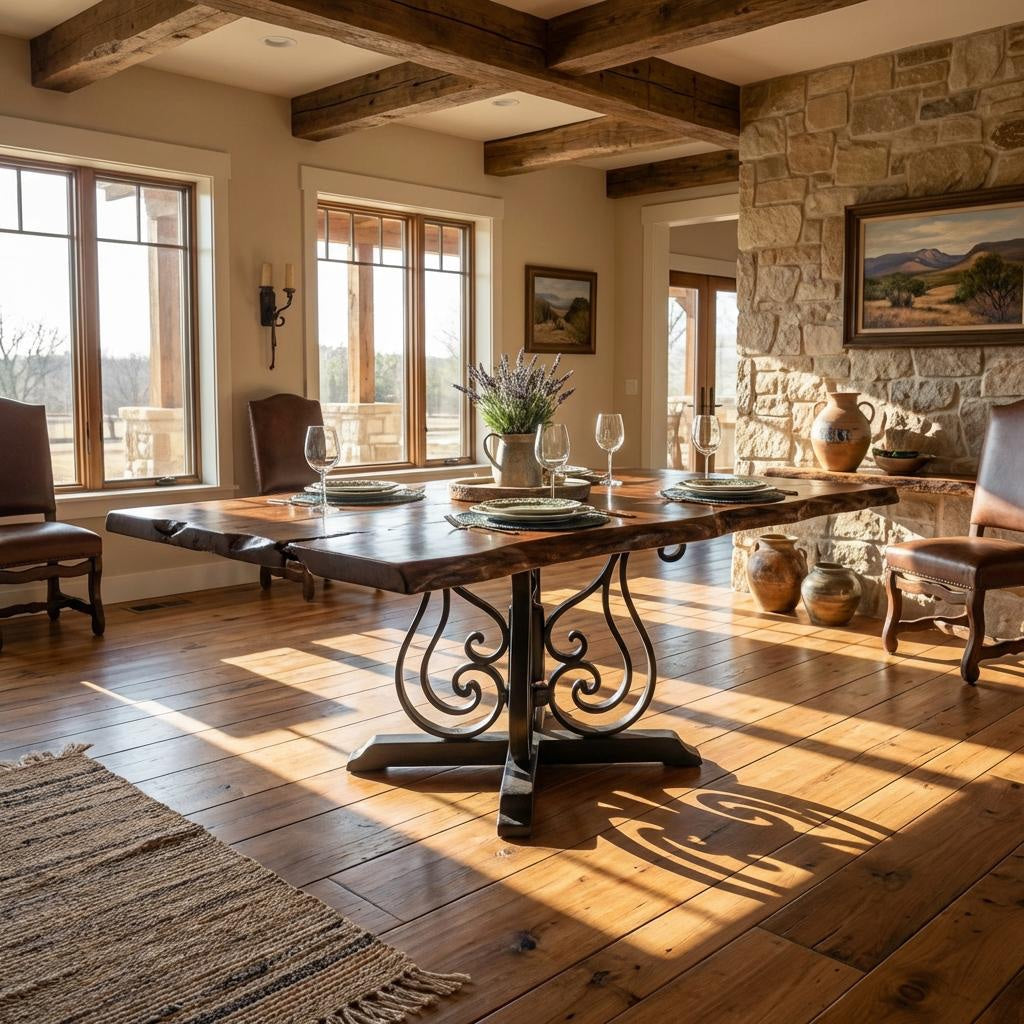 Because no two mesquite slabs are ever the same, your table will be entirely unique. You choose the size, edge detail, finish tone, and base design. Whether you’re furnishing a refined ranch home, a transitional dining room, or a modern Texas interior, this table anchors the space with authenticity and presence.